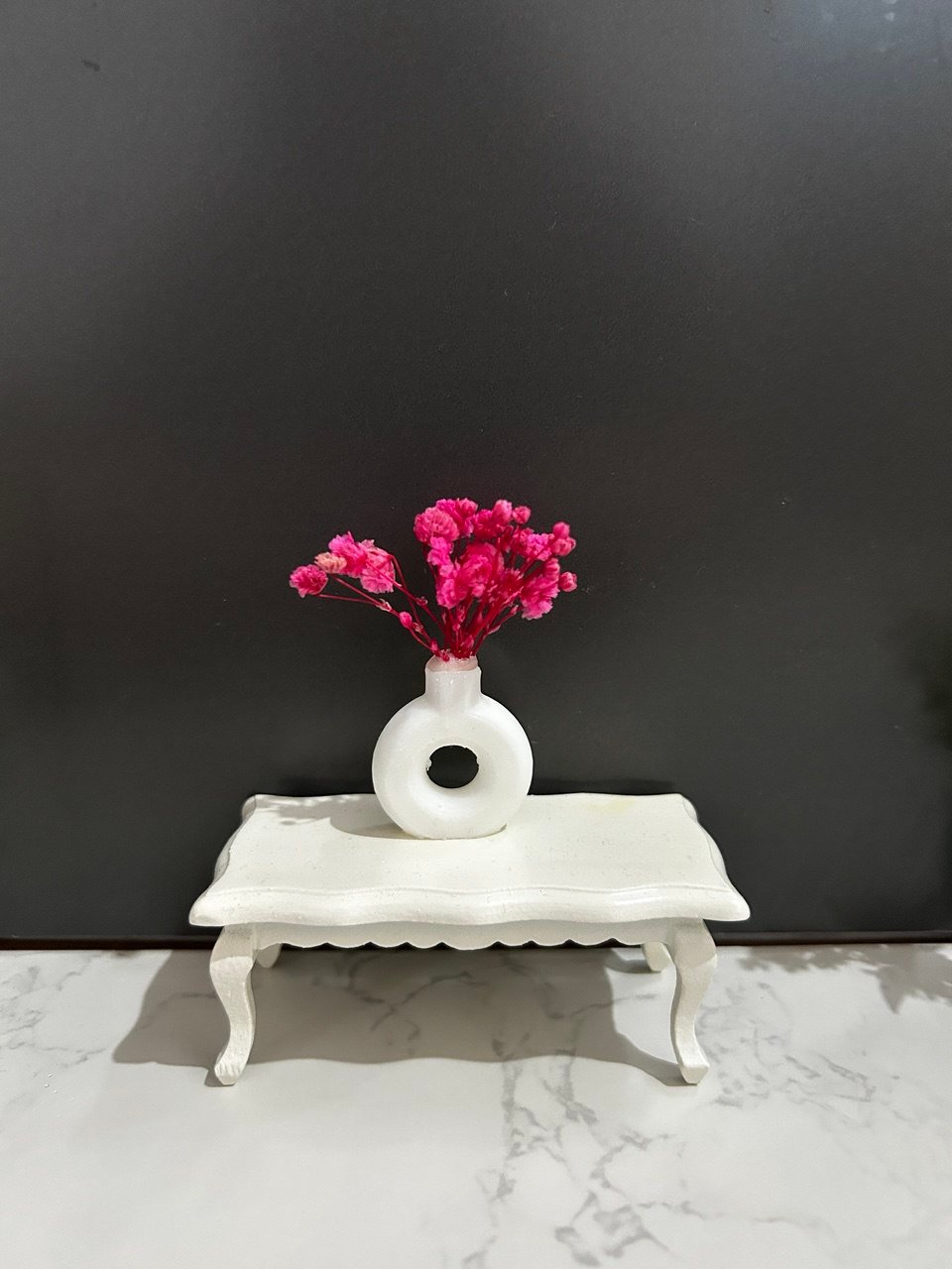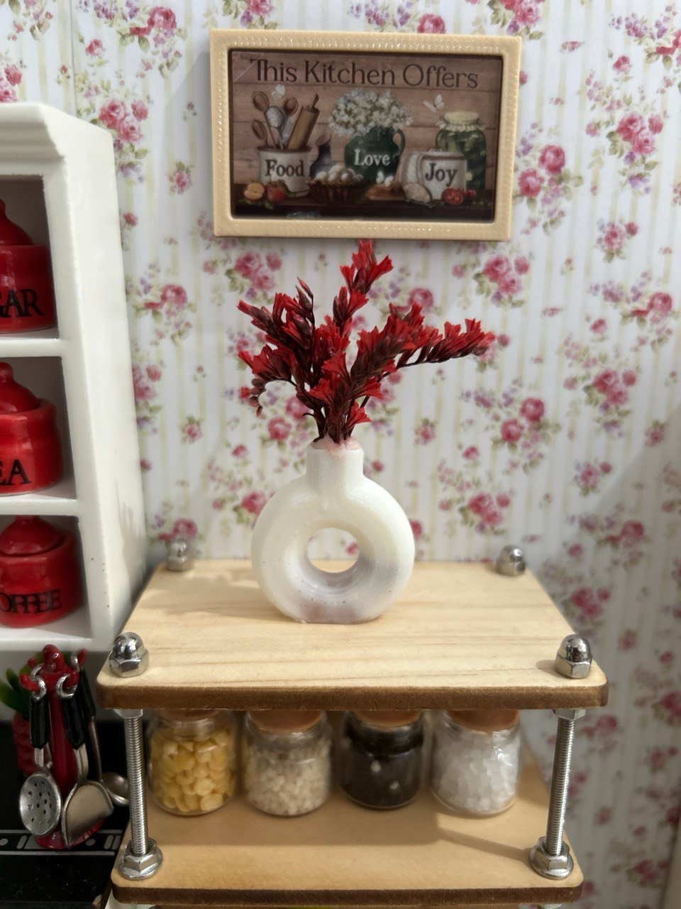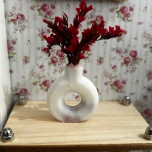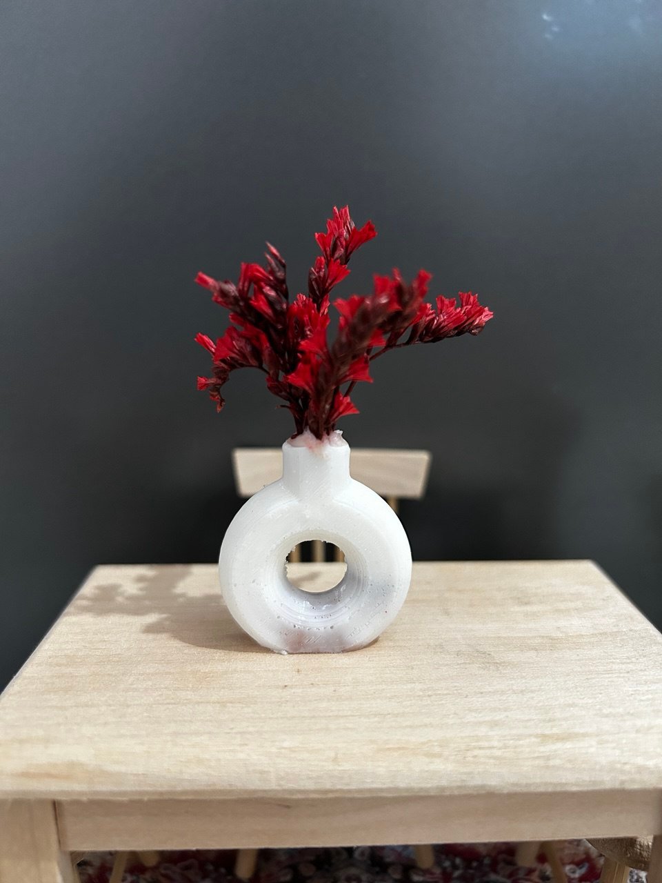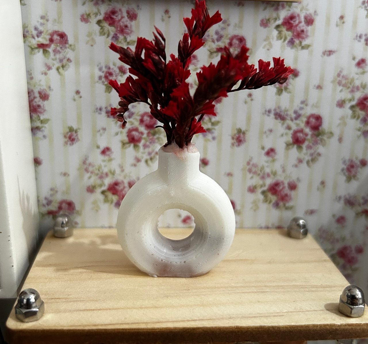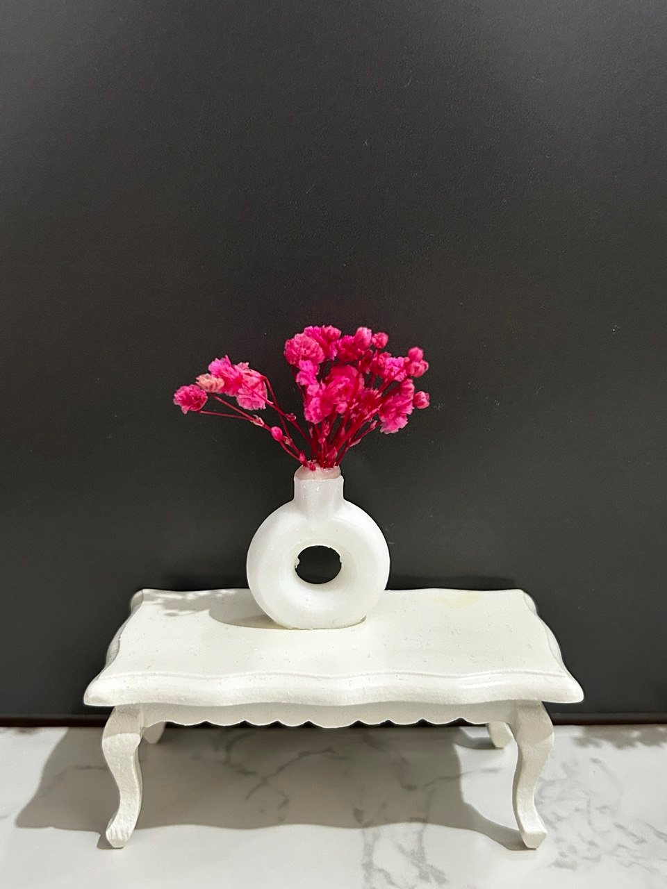 Introducing the Donut Flower Vase, a dollhouse miniature that adds a touch of whimsy to any home decor. Crafted with the finest details, this vase is a perfect addition to your miniature collection. With its unique design and intricate craftsmanship, it will surely be the centerpiece of any room.