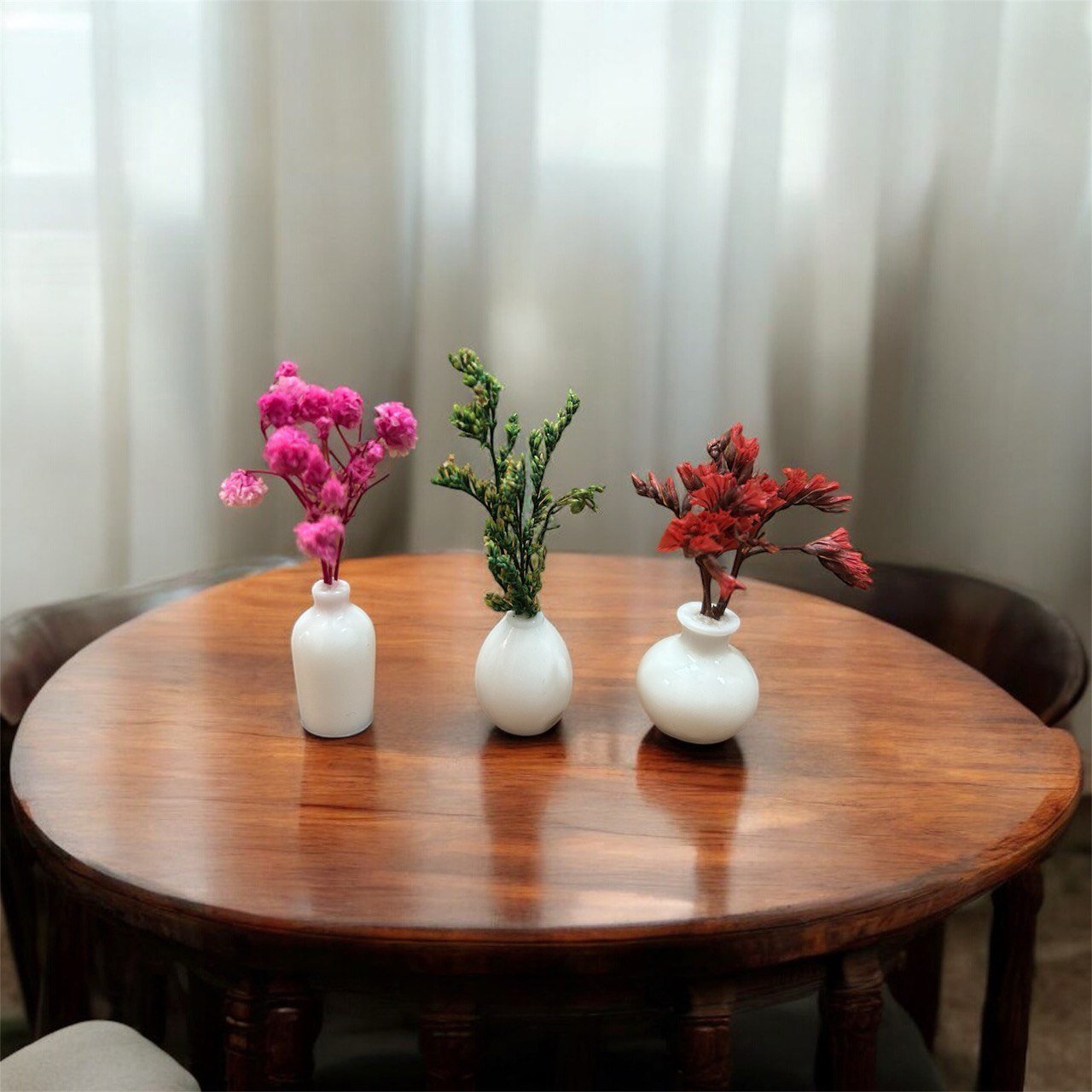 Expertly crafted with precision, this miniature set of vases is the perfect addition to any dollhouse. Made with attention to detail and high-quality materials, these vases provide a realistic and elegant touch to any miniature home. Enhance your dollhouse decor with this beautiful vase set.