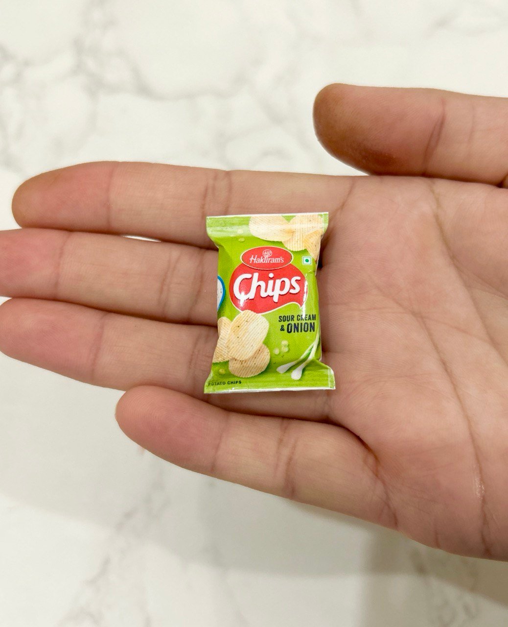 Discover the delicious and authentic taste of Haldirams Chips packets, a traditional Indian snack made with an expert blend of spices and ingredients. This Dollhouse miniature is the perfect addition to any miniature collection or for those looking to experience the flavors of India in a bite-size form. Made with care and expertise, enjoy a taste of Indian cuisine in every bite.