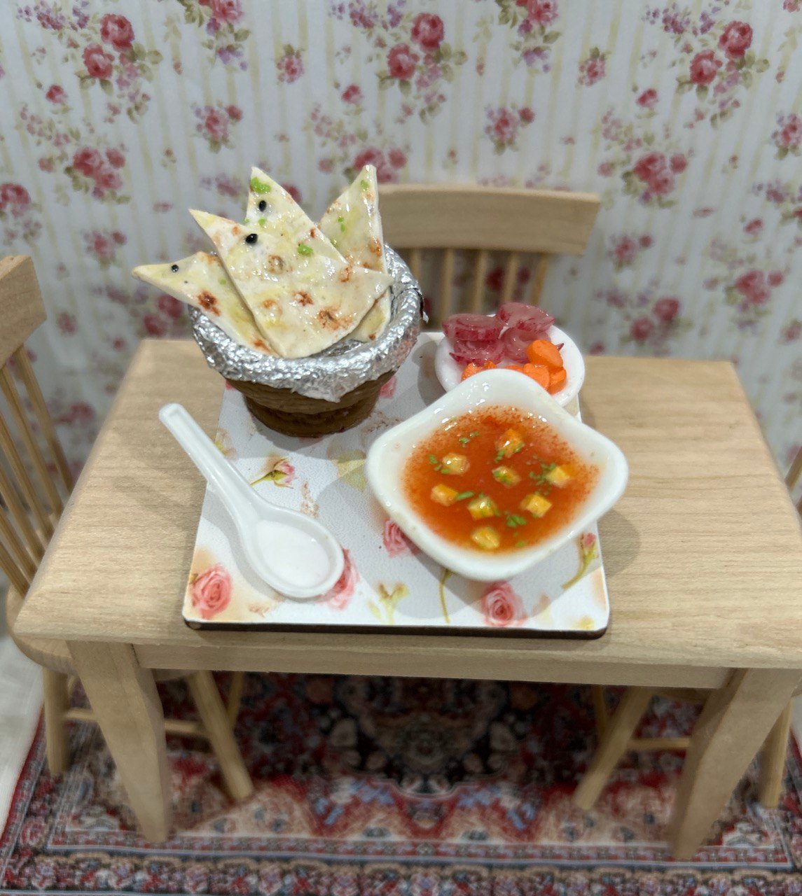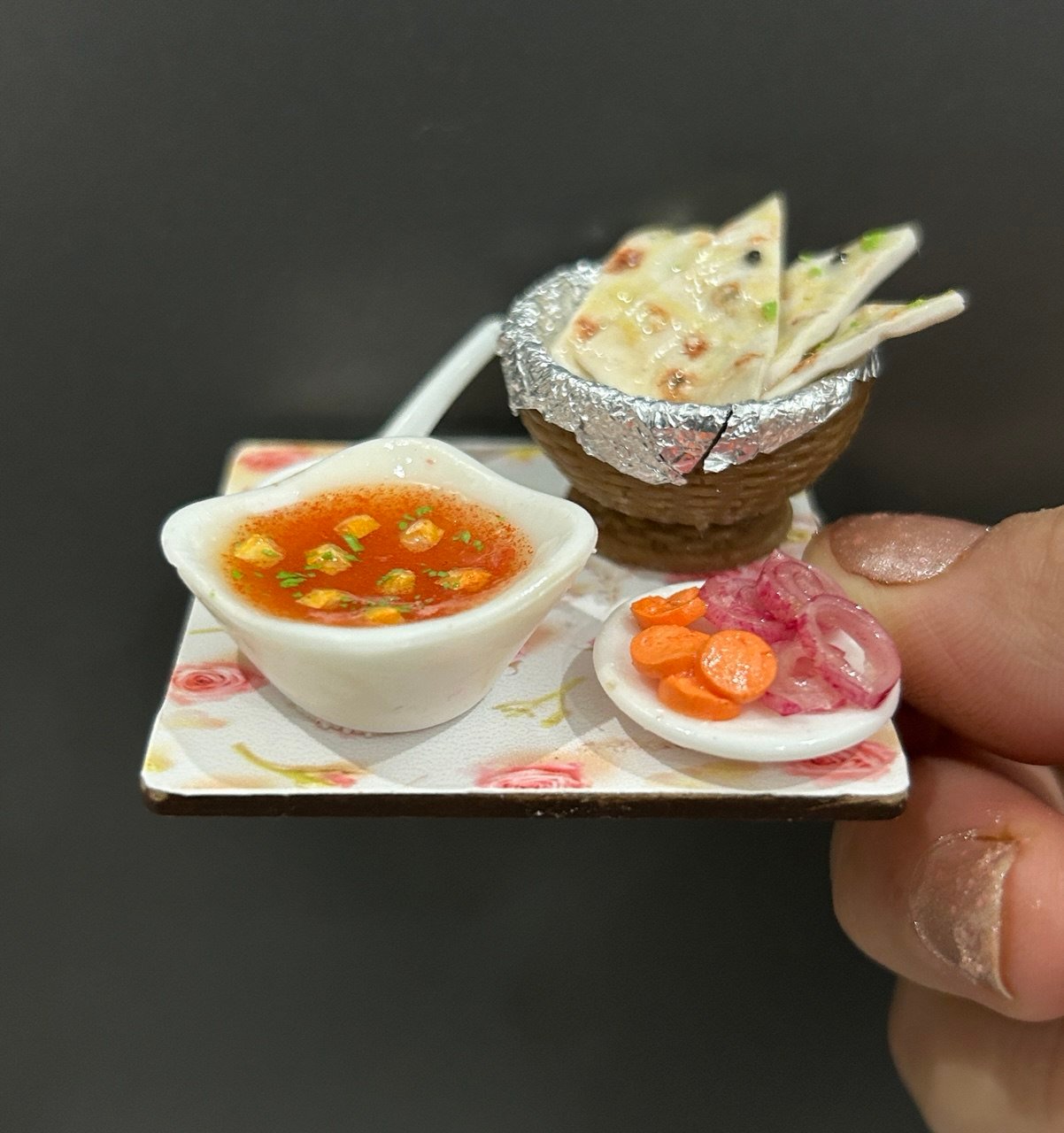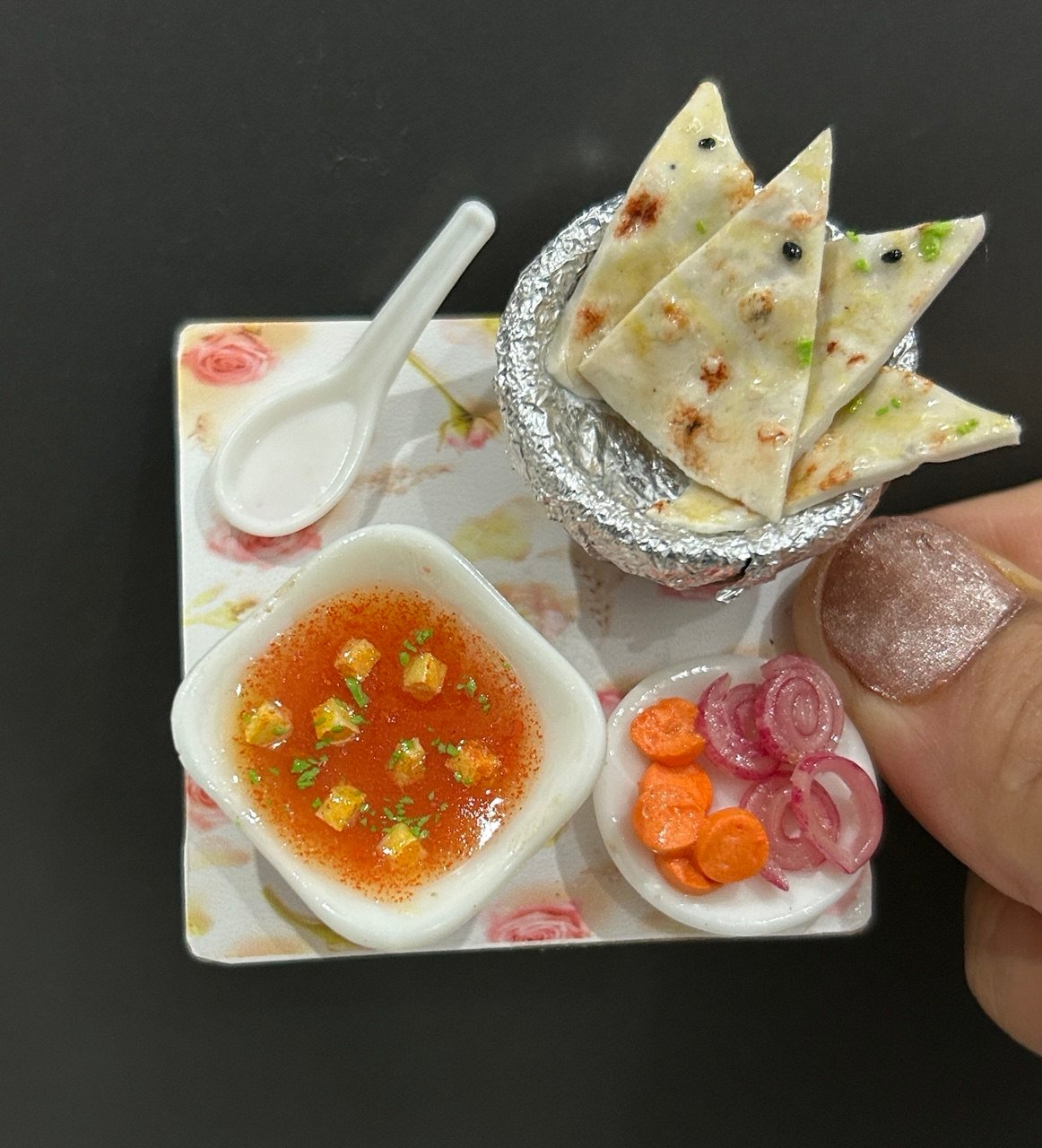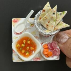 Here is a clay craft ode to the best in North-Indian cuisine in the form of a miniature fridge magnet consisting of a bowl of yummy paneer butter masala and scrumptious butter naans. The paneer butter masala is so very tempting owing to the artistically crafted chunks of paneer simmered in rich creamy curry. A delightful souvenir for people who enjoy flavorful Indian food which is an equally wonderful gift for all your near and dear ones.Best Souvenir Gift 100% Made in India.
