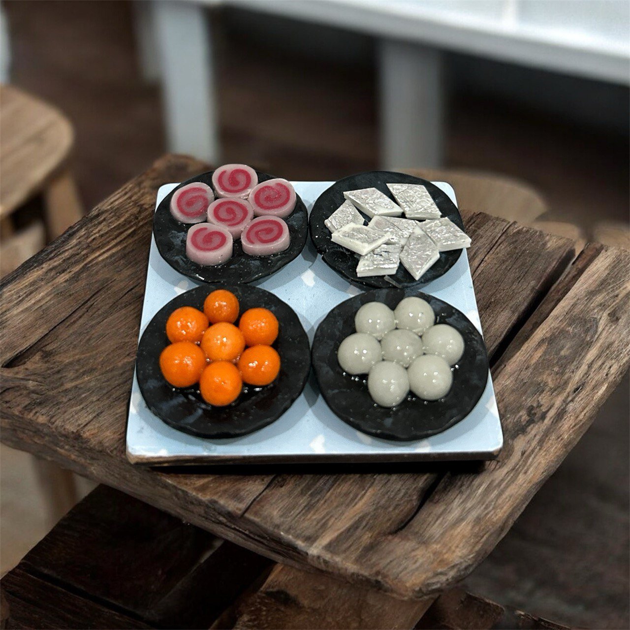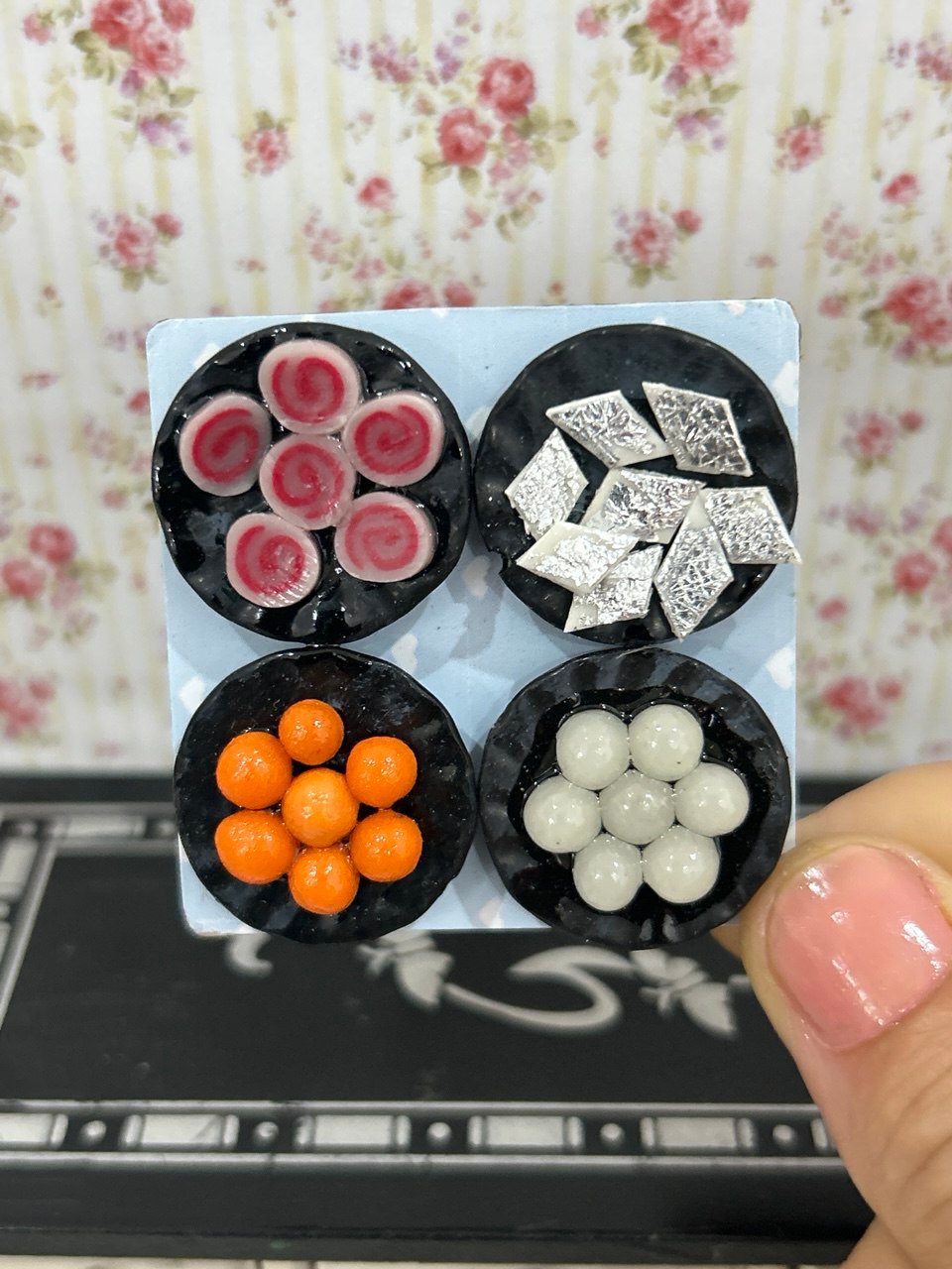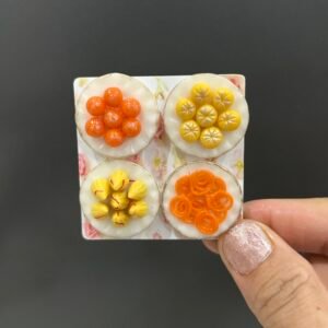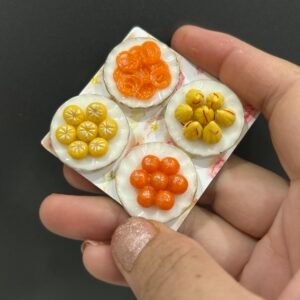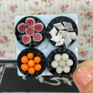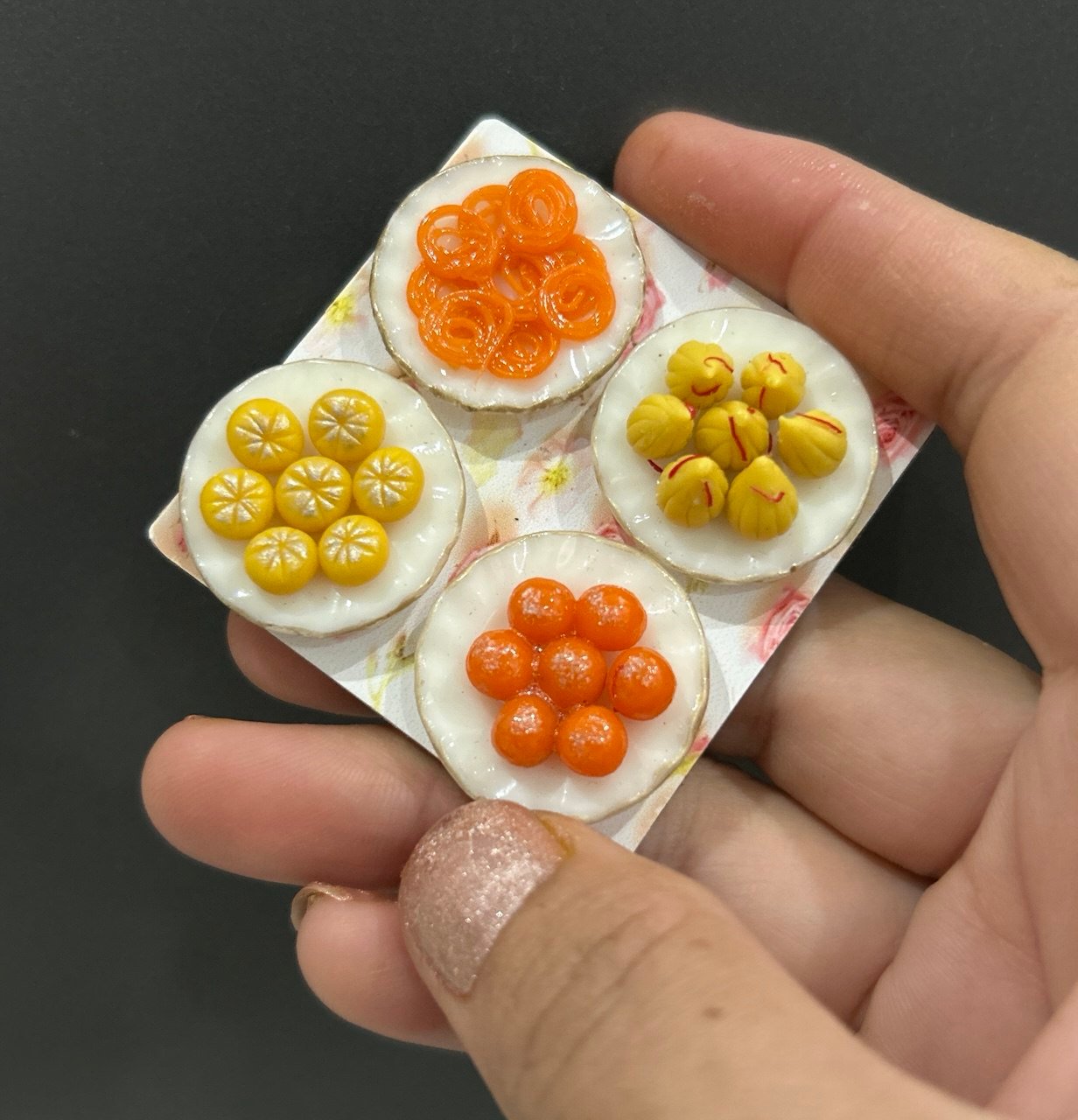 Here is some sweet creation in the form of an adorable miniature magnet. This splendid handmade creation consisting of 4 different varieties of Indian sweets has every detail captured well with the right blend of color, texture and shape. This cute clay food creation would add up to the charm of your home with its presence, apart from brightening up the day of your foodie friends.
